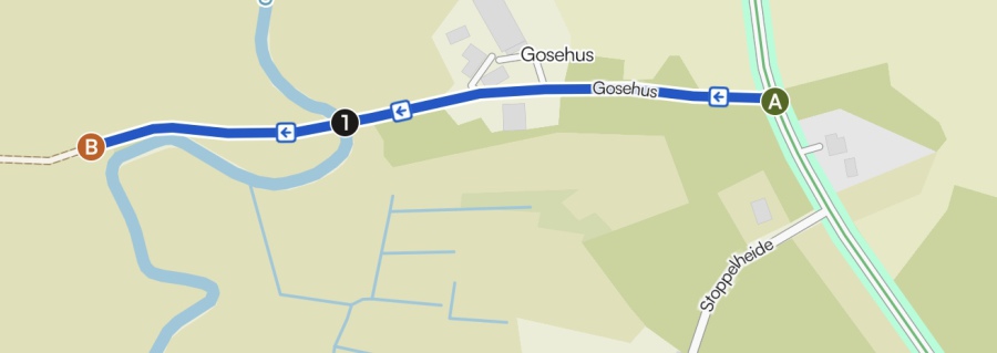 Zwischen Ober Ochtenhausen und Sandbostel geht es links in den Weg „Gosehus“