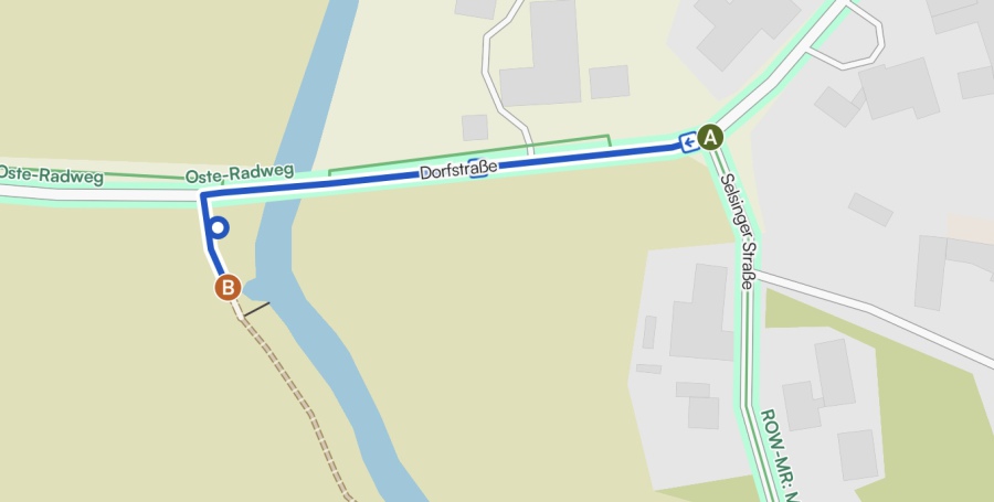 Von der Kreuzung im Dorf links abbiegen und direkt hinter der Ostebrücke links ist der Kanu-Einlass. Hier kannst du dein Auto anstellen.